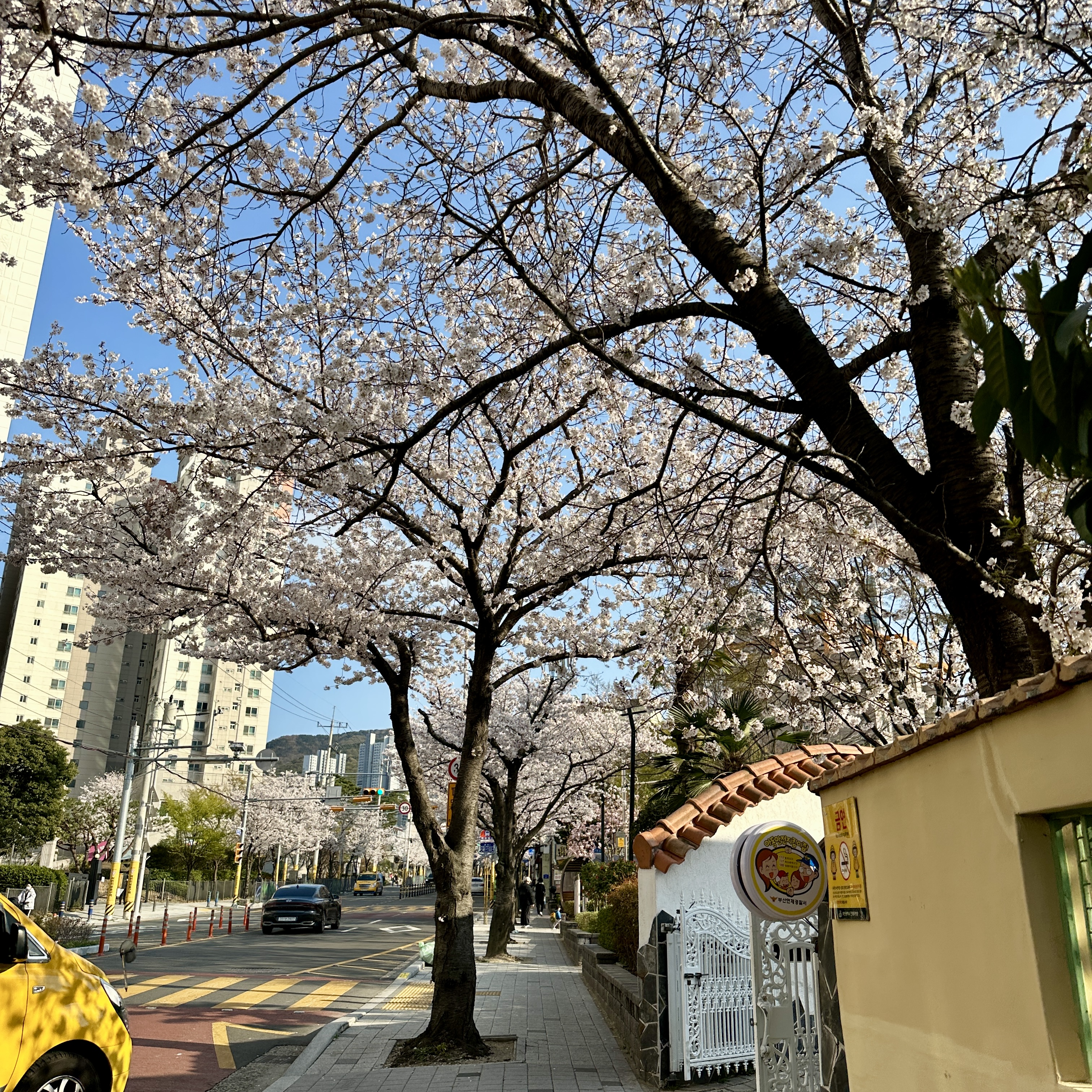 저는 스타벅스 부산시청점에서 걷기 시작해서 다시 돌아오는 코스로 걸었습니다. 약간 오르막길이기는 하지만 그렇게 힘들 정도는 아니었습니다. 같은 공간이지만 왼쪽과 오른쪽 인도를 걸으면서 보는 풍경이 달랐습니다. 시간과 체력이 되시는 분은 두 바퀴를 걸어보면서 벚꽃을 보는 것도 괜찮을 것 같습니다.